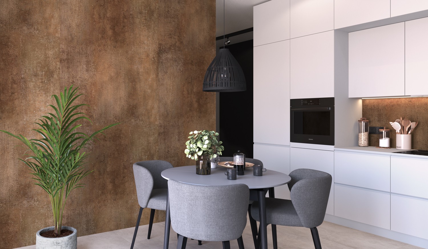 Calacatta Black въвежда престижна и елегантна тъмна естетика с гланциран завършек, подходяща за минималистични пространства, класически бани и кухни. Calacatta White е гланциран бял десен с деликатни по-тъмни нишки, придаващ определен шик на всекидневната и оптически увеличаващ банята. Заложете на бял мраморен десен с матова повърхност - Calacatta Snow, идеален за дизайни, базирани на неутрални цветове и естествени аксесоари. Бетонните десени като Concrete Mote придават съвременно усещане. Светлосивият нюанс е идеален за модерни аранжировки и хармонизира добре с дърво. Той създава уникална атмосфера, служейки като чудесен фон за смели цветове и дървени акценти, насърчавайки релаксацията. Smoky Ash предстлява пепелявосив, лъскав мраморен десен, който допълва елегантни апартаменти и лофт интериори, когато се комбинира с дърво. Rustica отразява модерните тенденции в интериорния дизайн, предлагайки впечатляващ и оригинален вид с релефната си матова повърхност, която се откроява на фона на едноцветни стени.