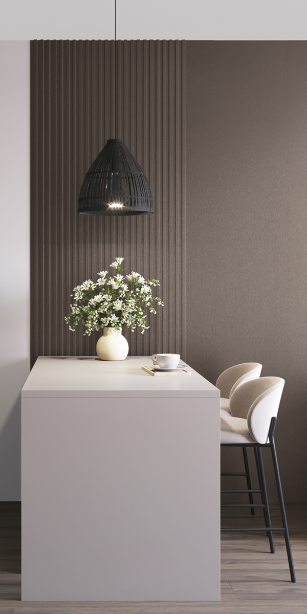 Ламелни панели S са по-деликатна и по-тънка версия, която перфектно подчертава модерния характер на интериора. Благодарение на фината си форма, те внасят лекота и елегантност в аранжировката, като същевременно запазват издръжливостта и устойчивостта, произтичащи от използването на минерално-полимерен композит. Панели S могат да се използват самостоятелно или в комбинация с XL и M, което ви позволява да създавате уникални, многоизмерни композиции. Монтажът им е бърз и лесен, а устойчивостта им на влага позволява използването им дори във взискателни условия.
