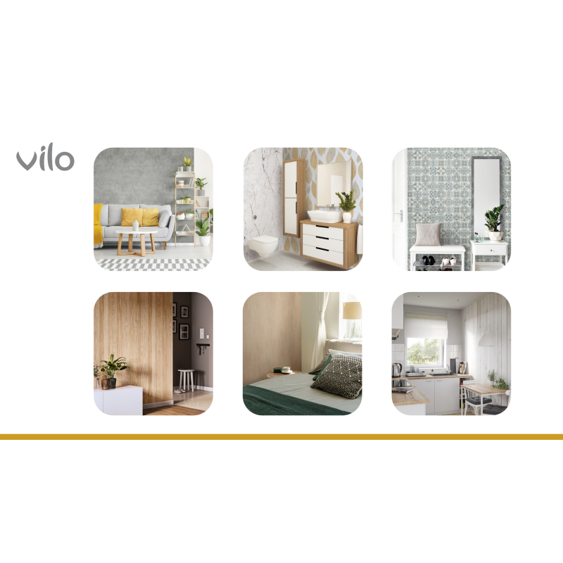 Vilo е марка, специализирана в производството на довършителни материали за дома, които съчетават добър дизайн и достъпна цена. Офертата на Vilo включва декоративни стени, подови подложки, подови первази, ламперия и вътрешни подпрозоречни первази.