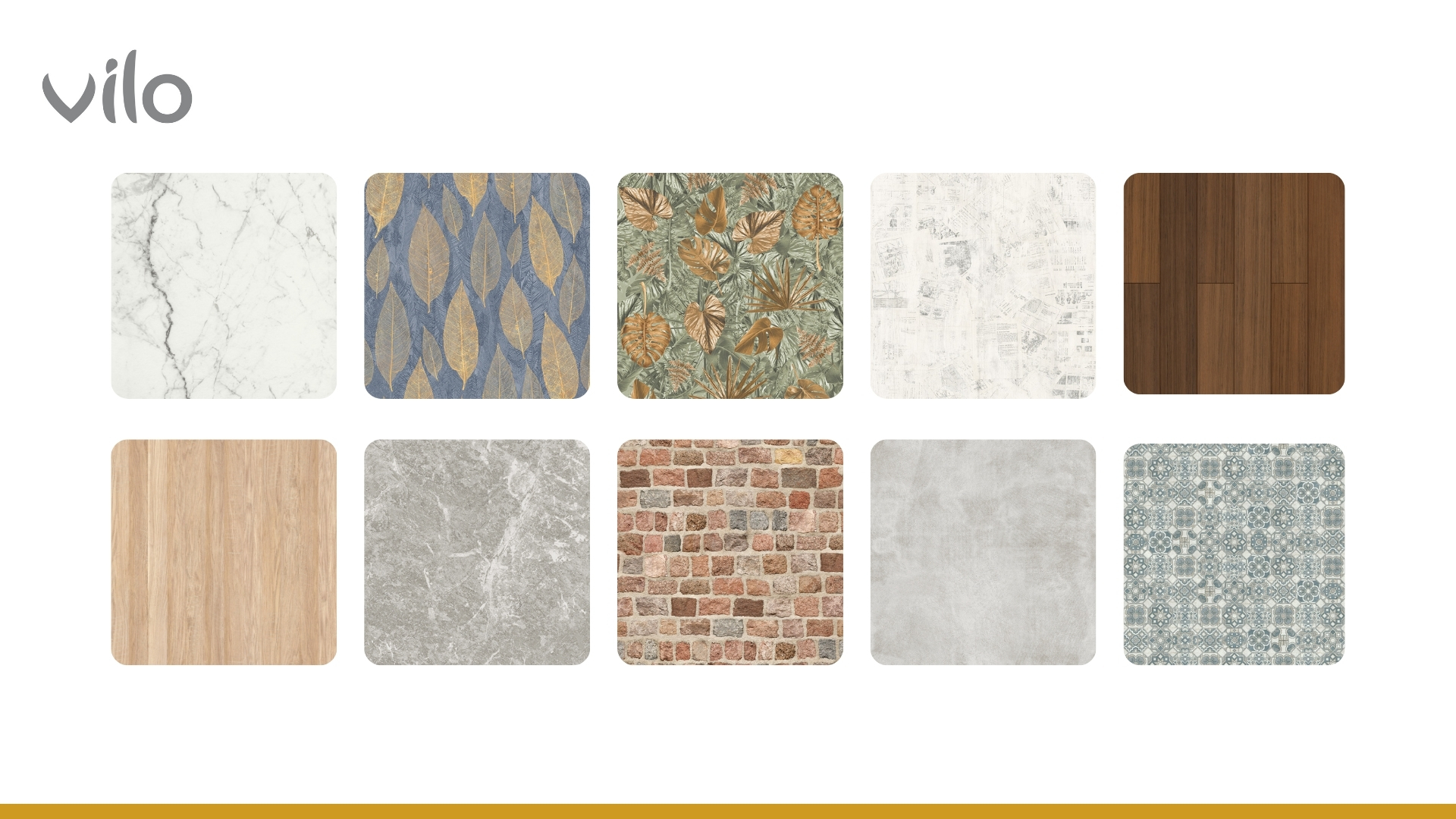 Vilo е марка, специализирана в производството на довършителни материали за дома, които съчетават добър дизайн и достъпна цена. Офертата на Vilo включва декоративни стени, подови подложки, подови первази, ламперия и вътрешни подпрозоречни первази.