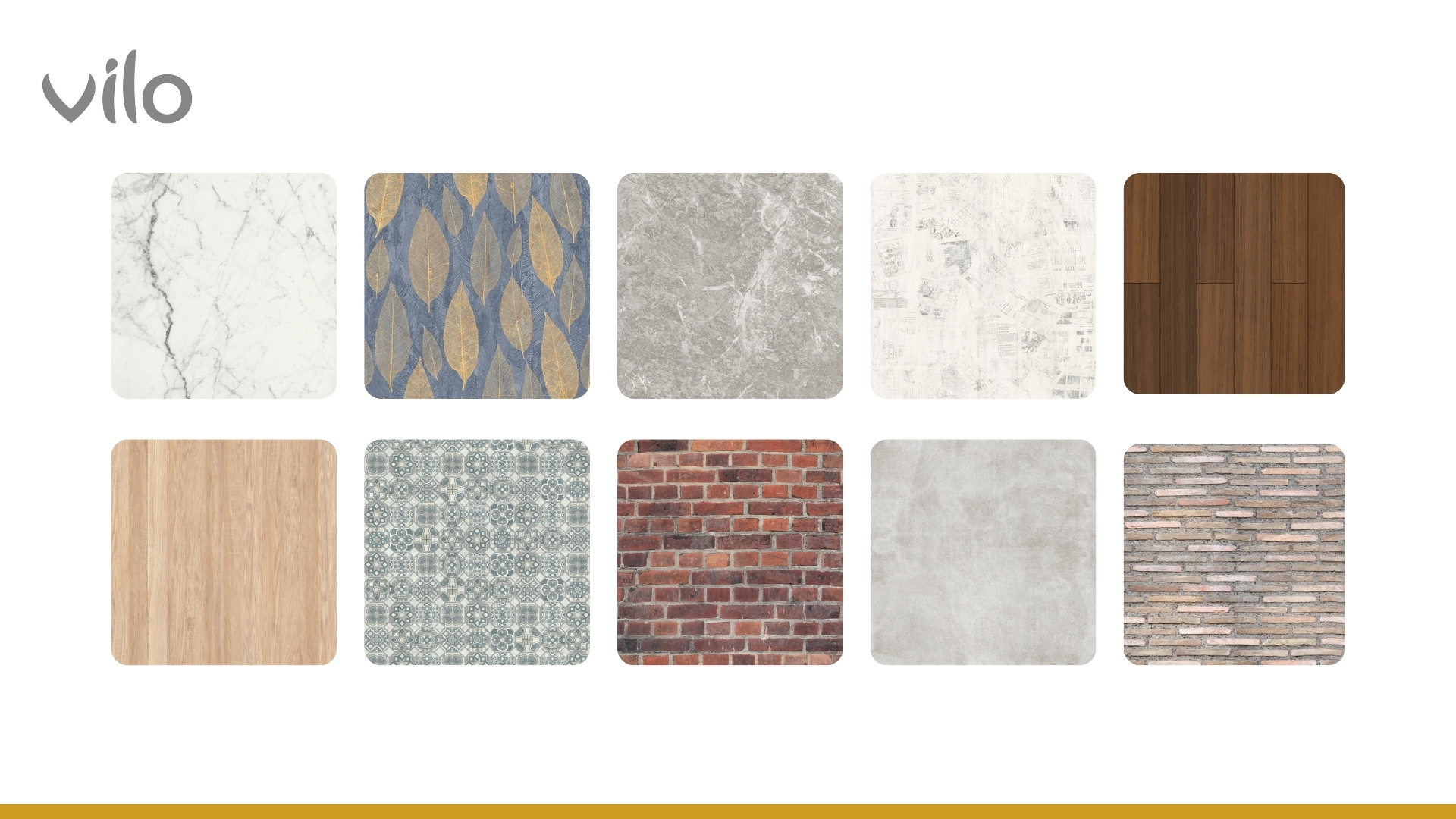 Vilo е марка, специализирана в производството на довършителни материали за дома, които съчетават добър дизайн и достъпна цена. Офертата на Vilo включва декоративни стени, подови подложки, подови первази, ламперия и вътрешни подпрозоречни первази.
