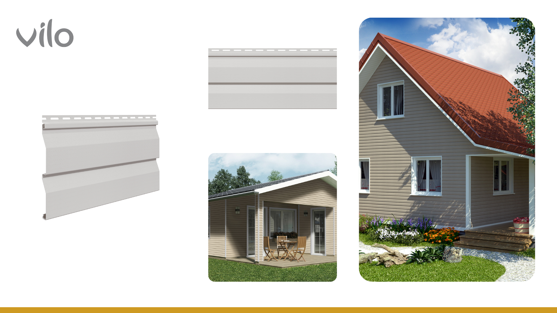 Сайдинг SV 03 Vilo е добро решение, когато искате бързо да промените облика на вашия дом. Сайдинг SV 03 е с двойна чупка на панела. Използването на този модел гарантира естетичен и в същото време дълготраен ефект. Формата от панелите е проектирана така, че да намали риска от задържане на замърсявания. Предлагат се в неутрални, светли цветове, които изглеждат особено привлекателни върху по-малките къщи или гаражи.