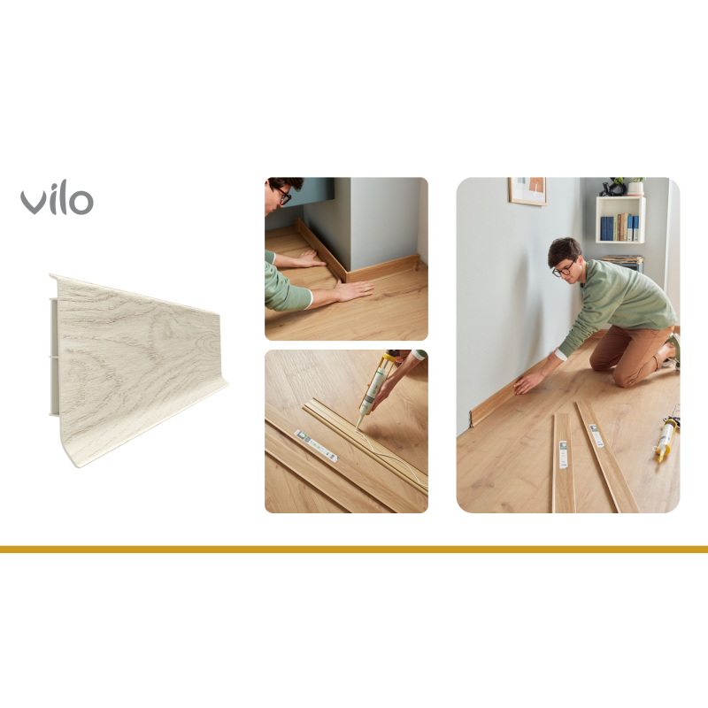 Vilo е марка, специализирана в производството на довършителни материали за дома, които съчетават добър дизайн и достъпна цена. Офертата на Vilo включва декоративни стени, подови подложки, подови первази, ламперия и вътрешни подпрозоречни первази.