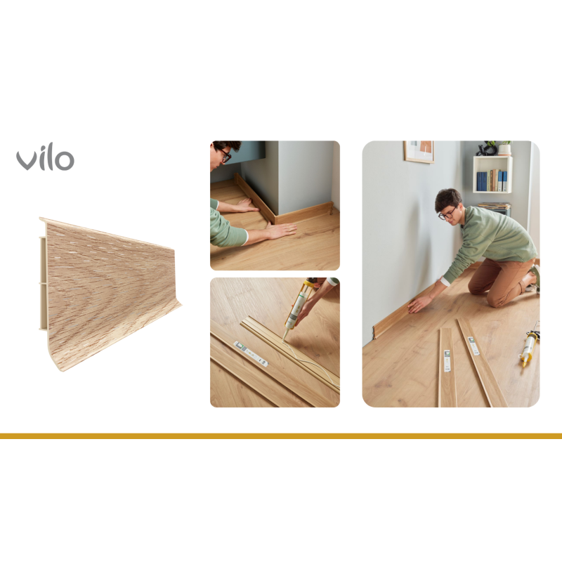 Vilo е марка, специализирана в производството на довършителни материали за дома, които съчетават добър дизайн и достъпна цена. Офертата на Vilo включва декоративни стени, подови подложки, подови первази, ламперия и вътрешни подпрозоречни первази.