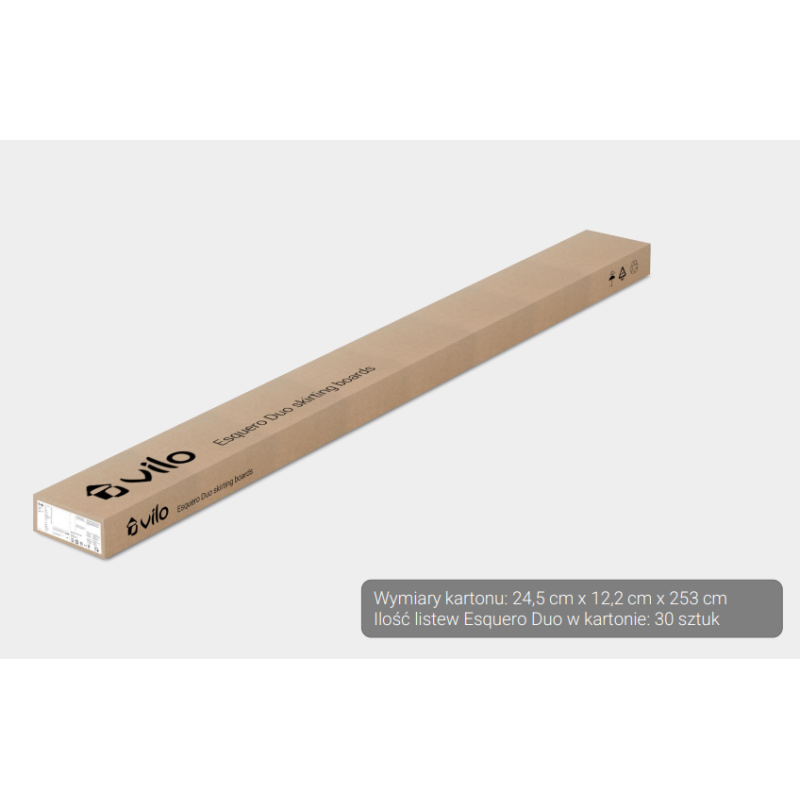 Esquero Duo не само осигурява естетичен завършек на подовете, но предлага и функционални решения, като например възможност за скриване на кабели. Влагоустойчивостта и издръжливостта на материала го правят идеален избор за помещения с висока влажност, като кухни и бани. Той е особено подходящ за интензивно използвани помещения. Благодарение на лесния монтаж с винтове, первазът Esquero Duo е чудесно решение както за професионалисти, така и за хора, които извършват ремонтни работи сами.