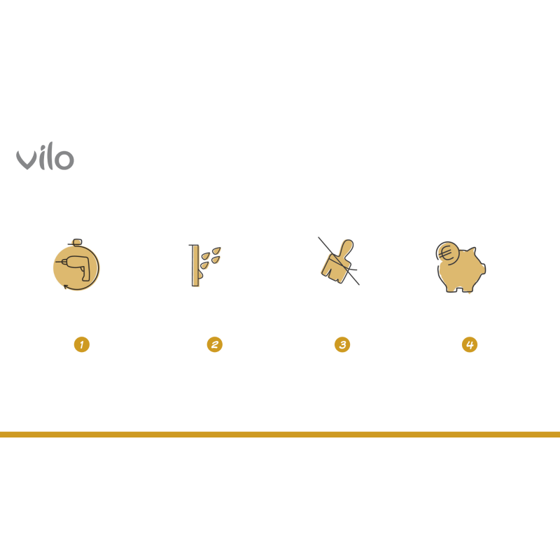 Vilo е марка, специализирана в производството на довършителни материали за дома, които съчетават добър дизайн и достъпна цена. Офертата на Vilo включва декоративни стени, подови подложки, подови первази, ламперия и вътрешни подпрозоречни первази.