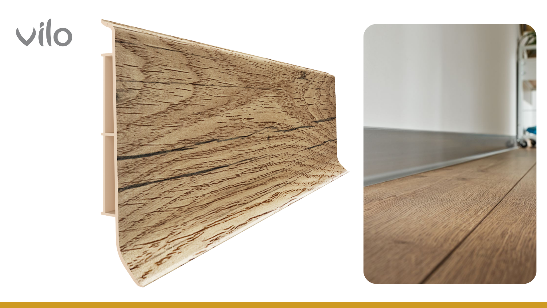 Vilo е марка, специализирана в производството на довършителни материали за дома, които съчетават добър дизайн и достъпна цена. Офертата на Vilo включва декоративни стени, подови подложки, подови первази, ламперия и вътрешни подпрозоречни первази.