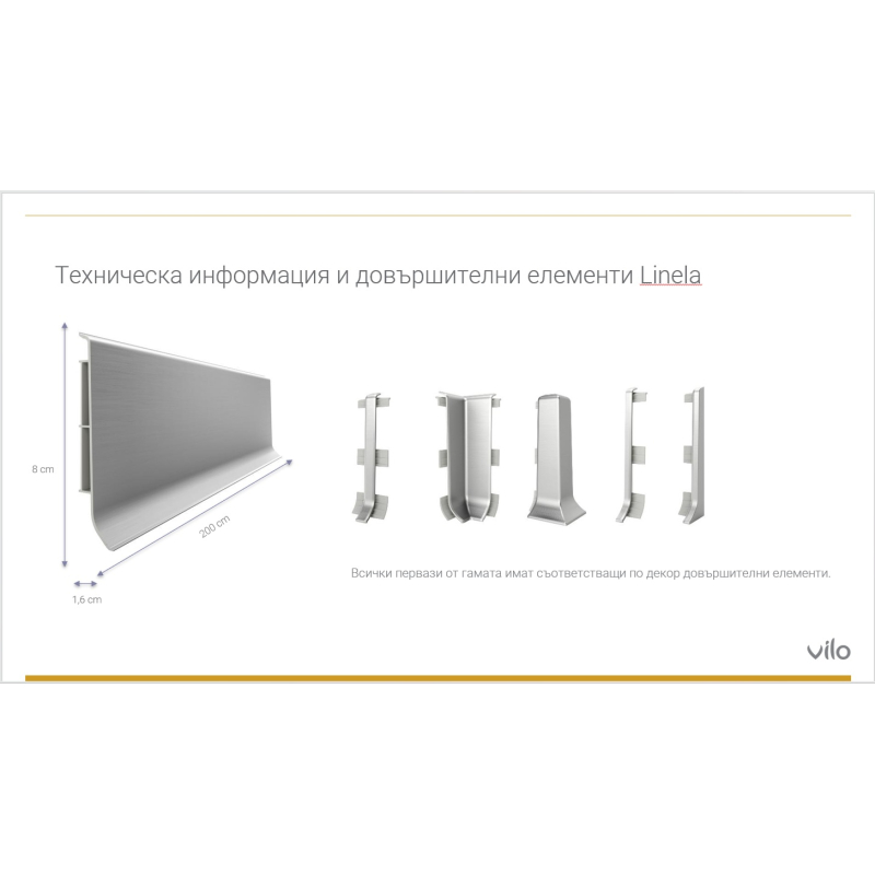 Первазът Linela е елегантен перваз, който ще придаде характер на всеки интериор. Създаден за тези, които ценят модерния дизайн, той съчетава функционалност и естетика. Форма я прави идеално вписваща се в различни дизайнерски стилове - от минималистичен до класически.