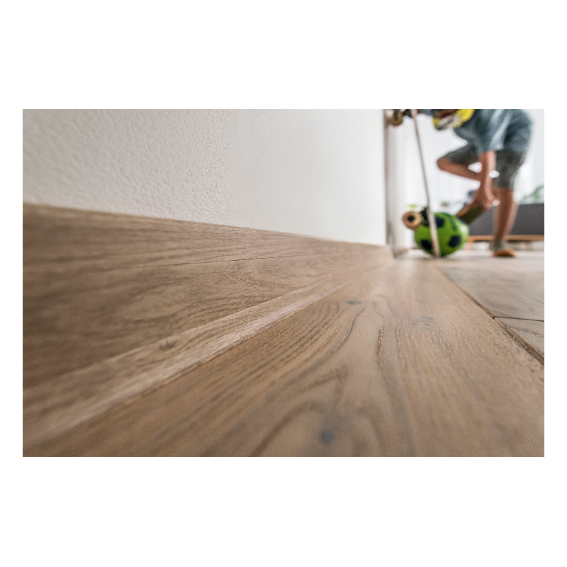 Первазът Esquero Duo е универсално решение, което е подходящо както за домове, така и за офиси, предлагайки елегантен завършек на пода. Пасва идеално на подови настилки, като ламинати, винилови подове или плочки.