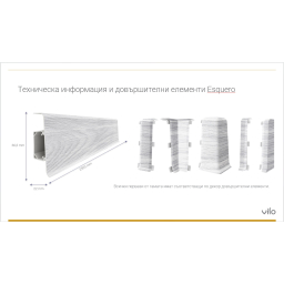 Vilo е марка, специализирана в производството на довършителни материали за дома, които съчетават добър дизайн и достъпна цена. Офертата на Vilo включва декоративни стени, подови подложки, подови первази, ламперия и вътрешни подпрозоречни первази.