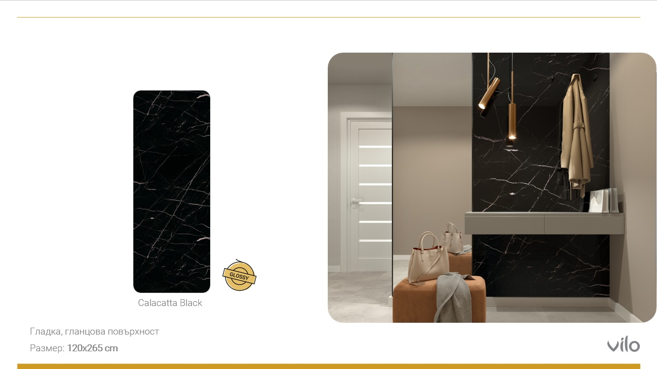 Широкоформатни SPC плочи Calacatta Black - гланц 120х265 cm