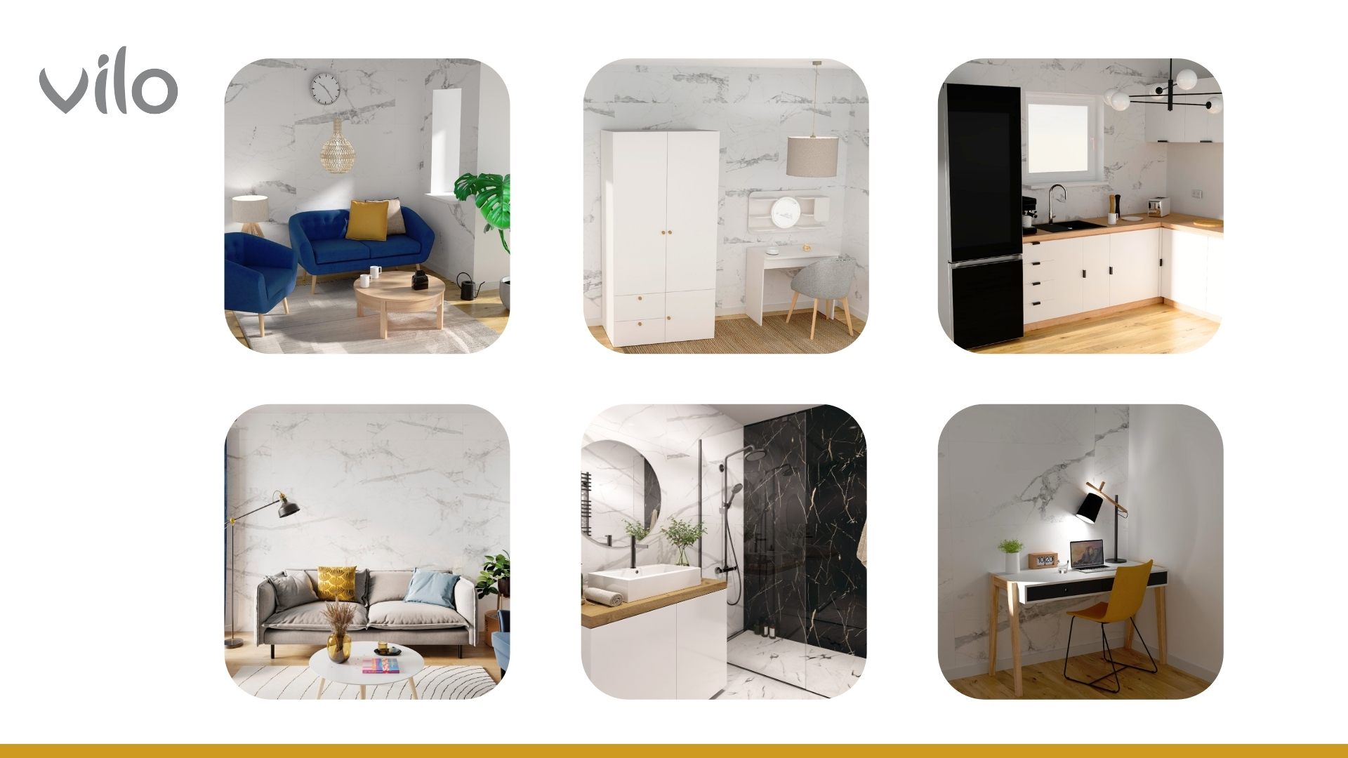 Vilo е марка, специализирана в производството на довършителни материали за дома, които съчетават добър дизайн и достъпна цена. Офертата на Vilo включва декоративни стени, подови подложки, подови первази, ламперия и вътрешни подпрозоречни первази.