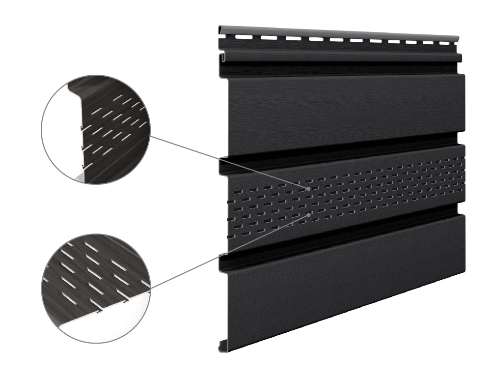Софит SVP 07 е с перфорирани панели. Това означава, че в панелите има малки фабрични вентилационни отвори, пробити по начин, който не позволява проникването на насекоми през тях. Перфорираният софит се препоръчва когато е необходимо да се осигури вентилация на покрива.