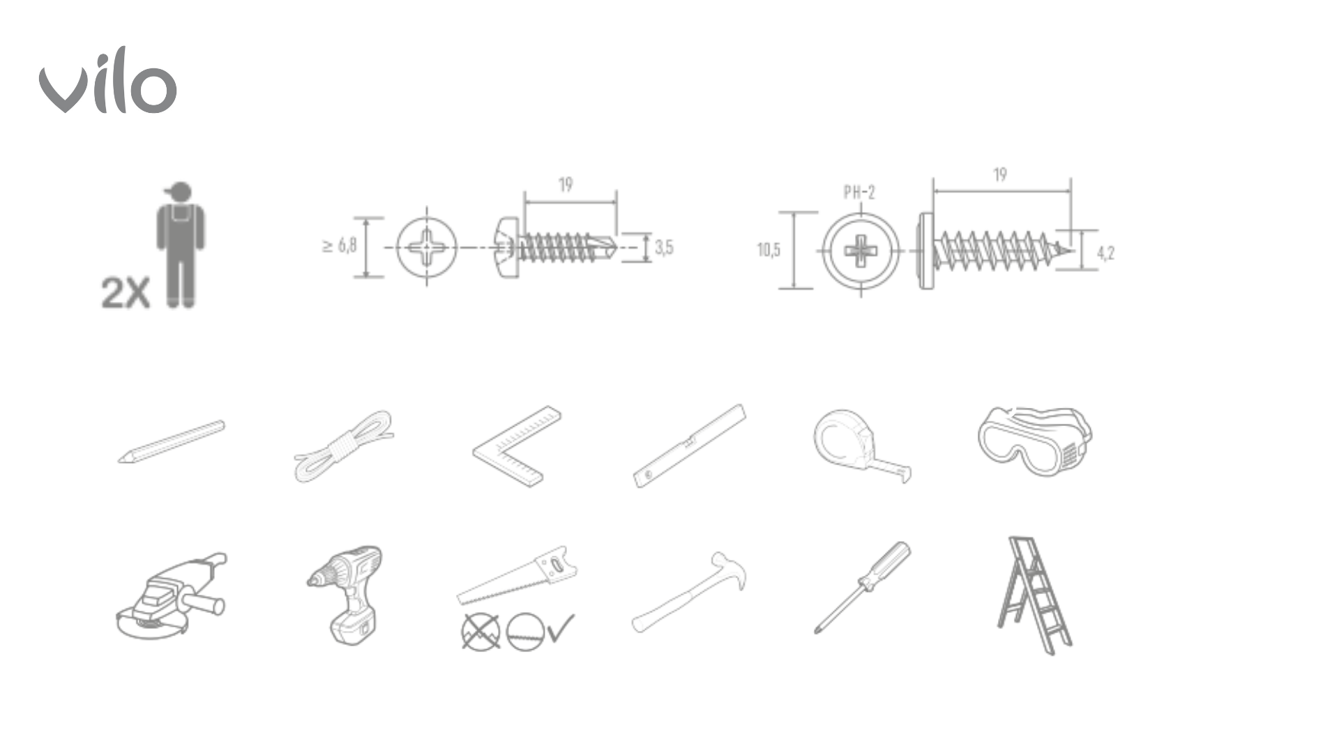 Alles, was Sie benötigen, ist ein Grundset an Werkzeugen sowie ggf. die optionalen, speziell abgestimmten Vilo-Montagekleber, die die Anbringung noch einfacher machen.