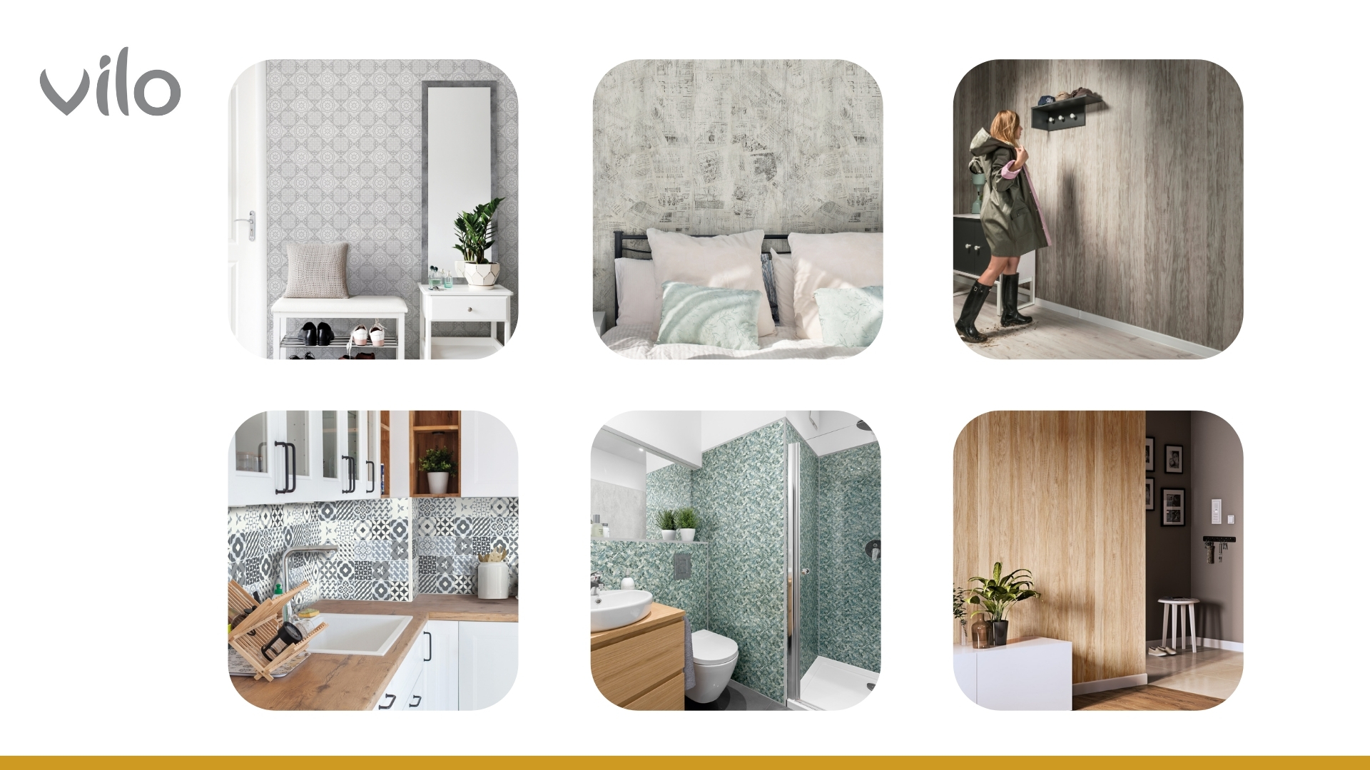 Vilo ist eine Marke aus der Einrichtungsbranche, die gutes Design mit erschwinglichen Preisen vereint. Zum Produktsortiment gehören dekorative Wandpaneele, Türen, Bodenpaneele, Unterlagen für Paneele, Sockelleisten sowie Innenfensterbänke.
