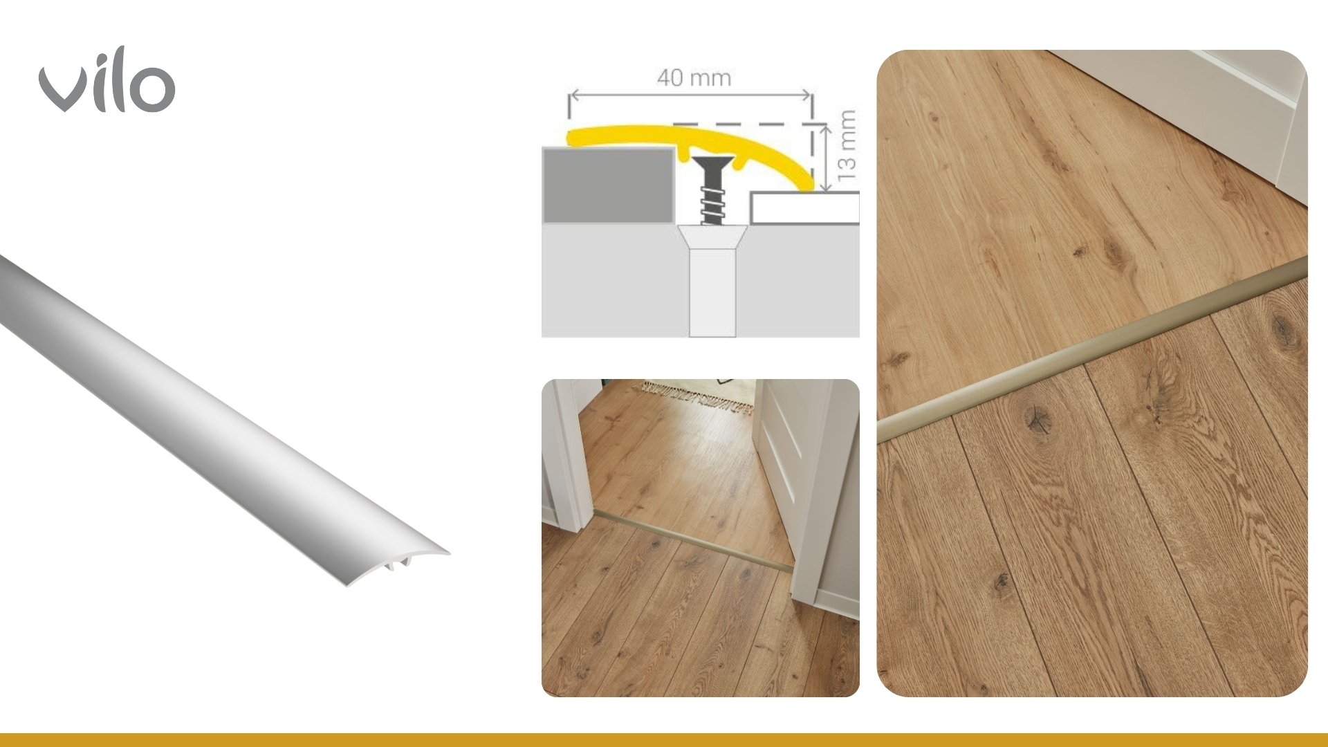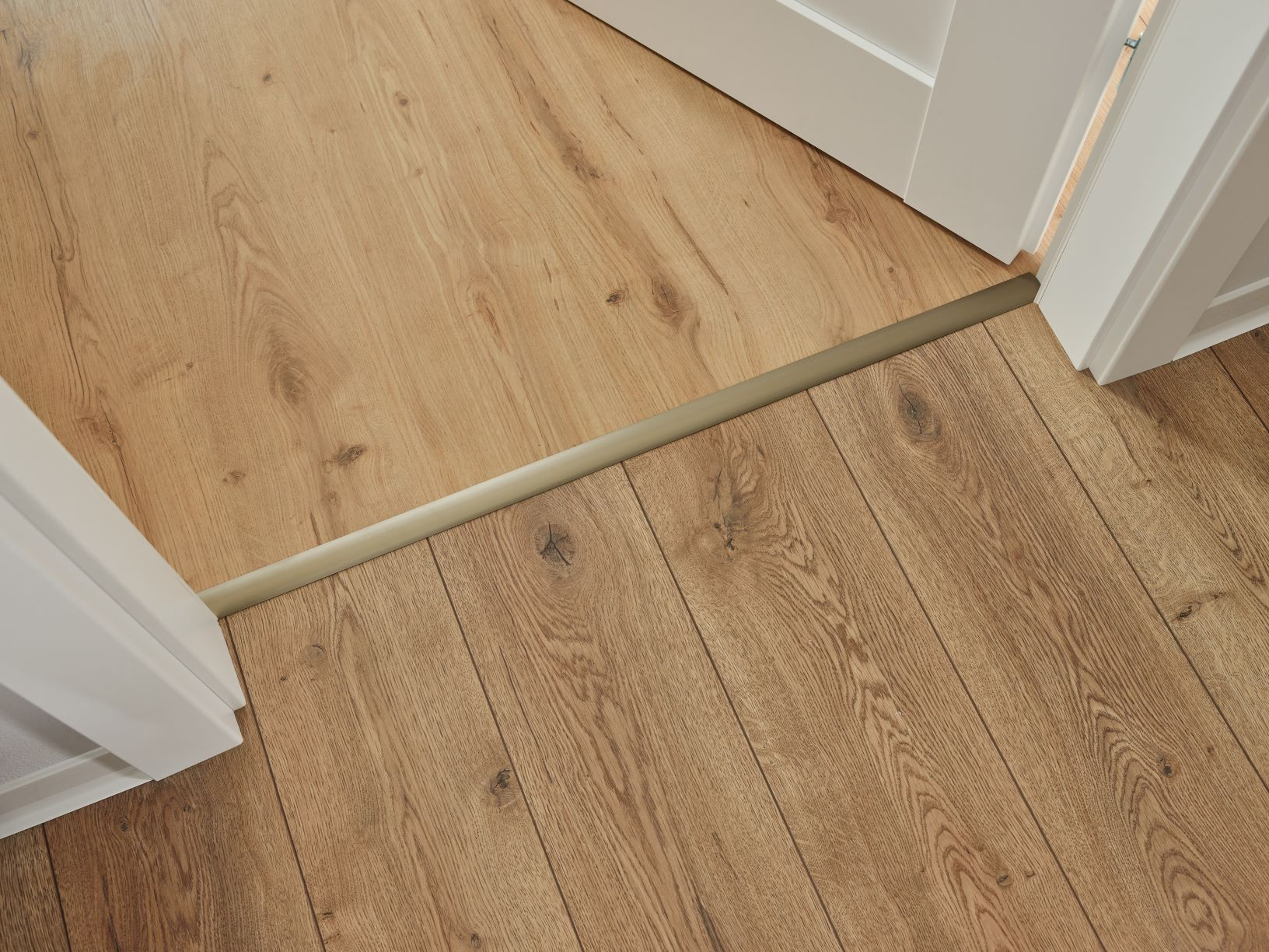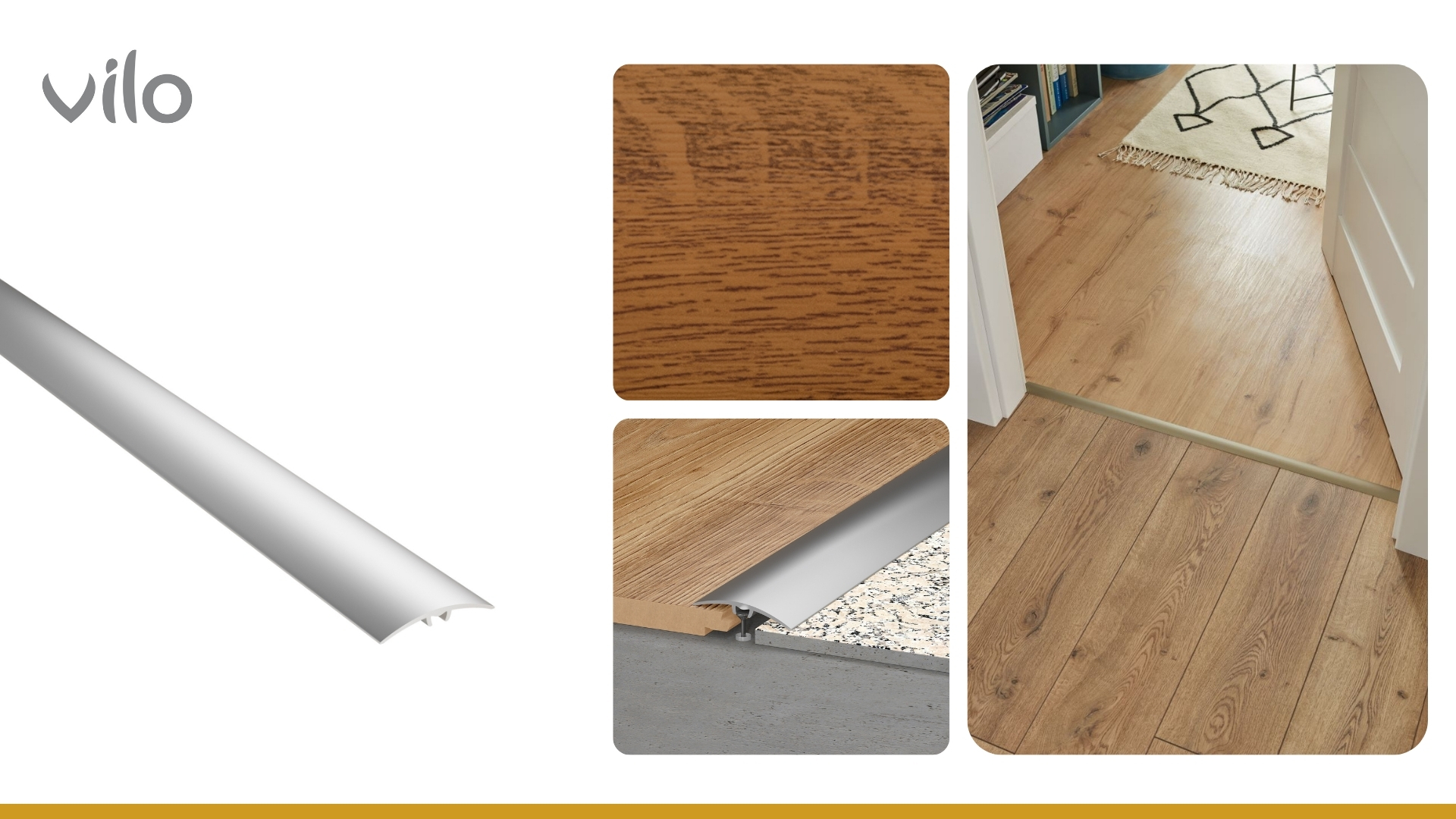 Acabado estético - El perfil plano y elegante de la moldura proporciona un acabado perfecto para suelos, dando al interior un aspecto coherente y moderno.
