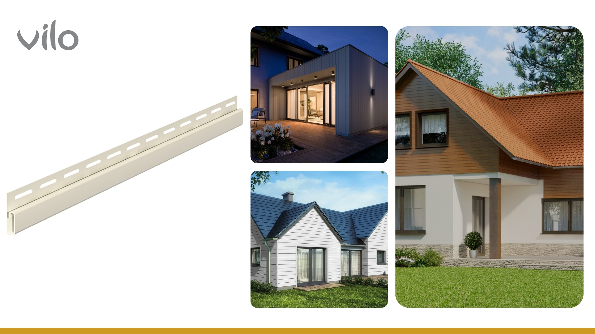 - Естетичний дизайн - класичний вигляд дошки з подвійним зламом, доступний у пастельних кольорах та кольорах під дерево, надає будівлям сучасного та елегантного вигляду.