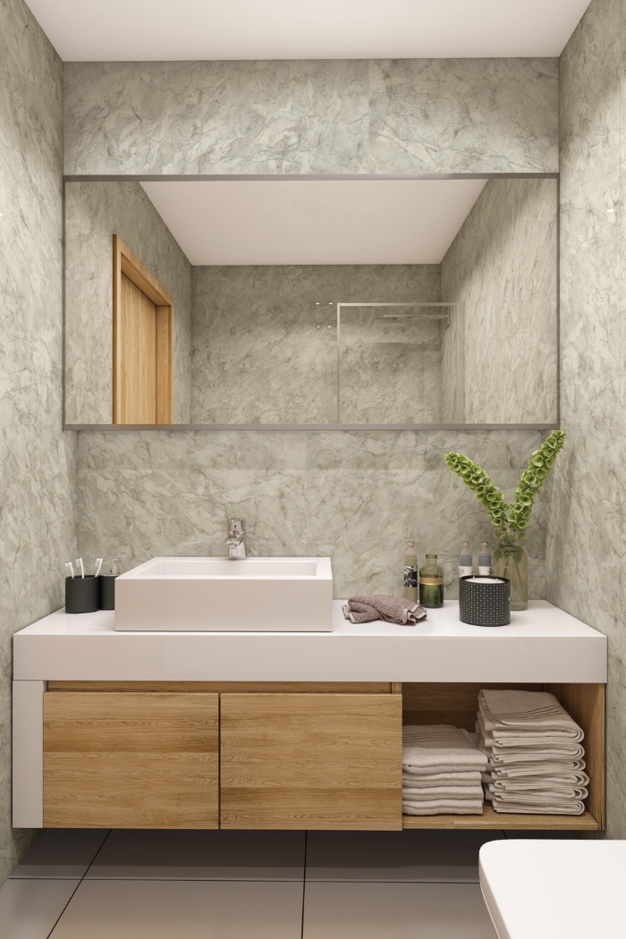 Bucătărie și Baie: Rezistența la stropire și umiditate le face ideale pentru a fi folosite în zonele expuse, oferind un design unic de mozaic patchwork sau tapet sofisticat în locul faianței.