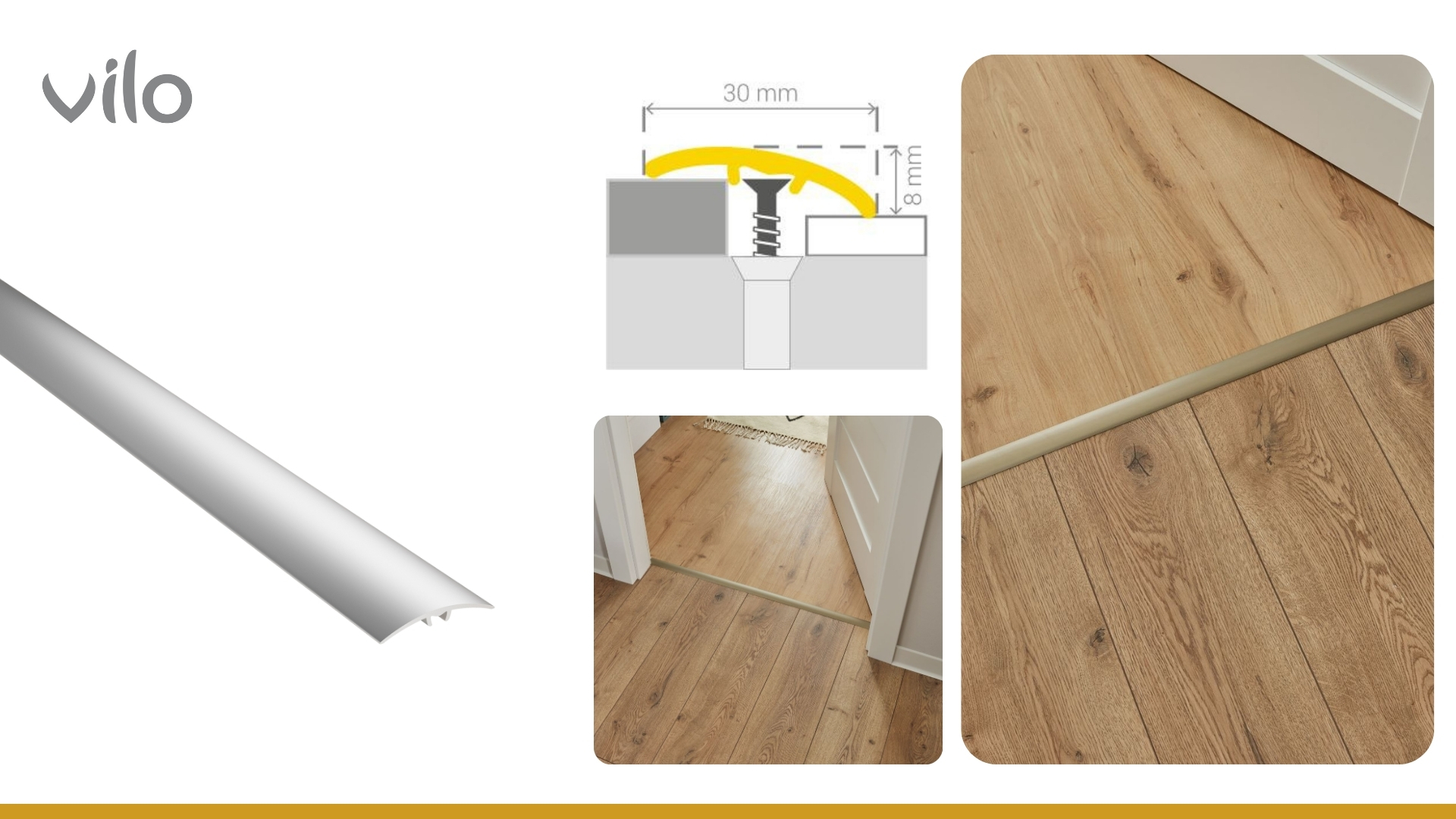 Деформаційні планки Vilo виготовлені з міцного матеріалу, що гарантує їх довговічність і стійкість до механічних пошкоджень. Доступні в різних кольорах, вони ідеально підходять до дизайну інтер’єру, створюючи цілісний і естетичний ефект обробки.